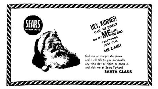 1955 年,美国Sears Roebuck百货公司为了向孩子们证明圣诞老人是真的,于是广告刊登了一个"可直接和圣诞老人通话"的电话号码,不料印错了一个数字,印成了北美大陆防空司令部(CONAD,也就是 NORAD 的前身)的热线号码。