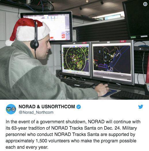 12月22日,NORAD在推特上发布预告称,从平安夜开始他们将一如既往的帮孩子们追踪圣诞老人的行踪,并且附上了一张戴着圣诞帽的兵哥哥紧盯雷达图的工作照。