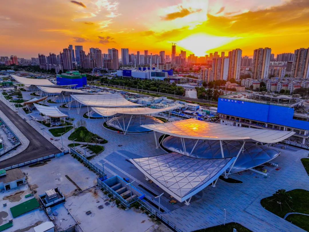 夕阳西下,“京帆”屋盖的ETFE膜材被染成温暖的橘红色,与地下场站里的灯光交相辉映。屋下,忙碌筹备,目光聚集在这处即将投入使用的城市新地标上。
