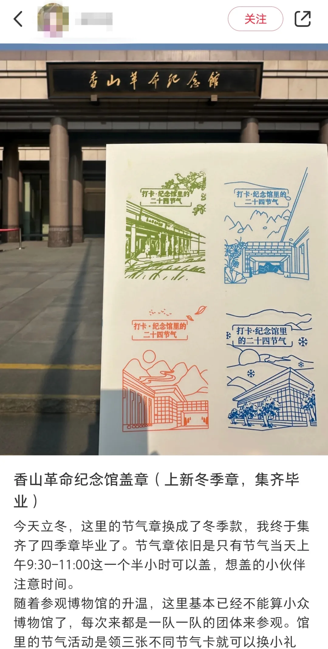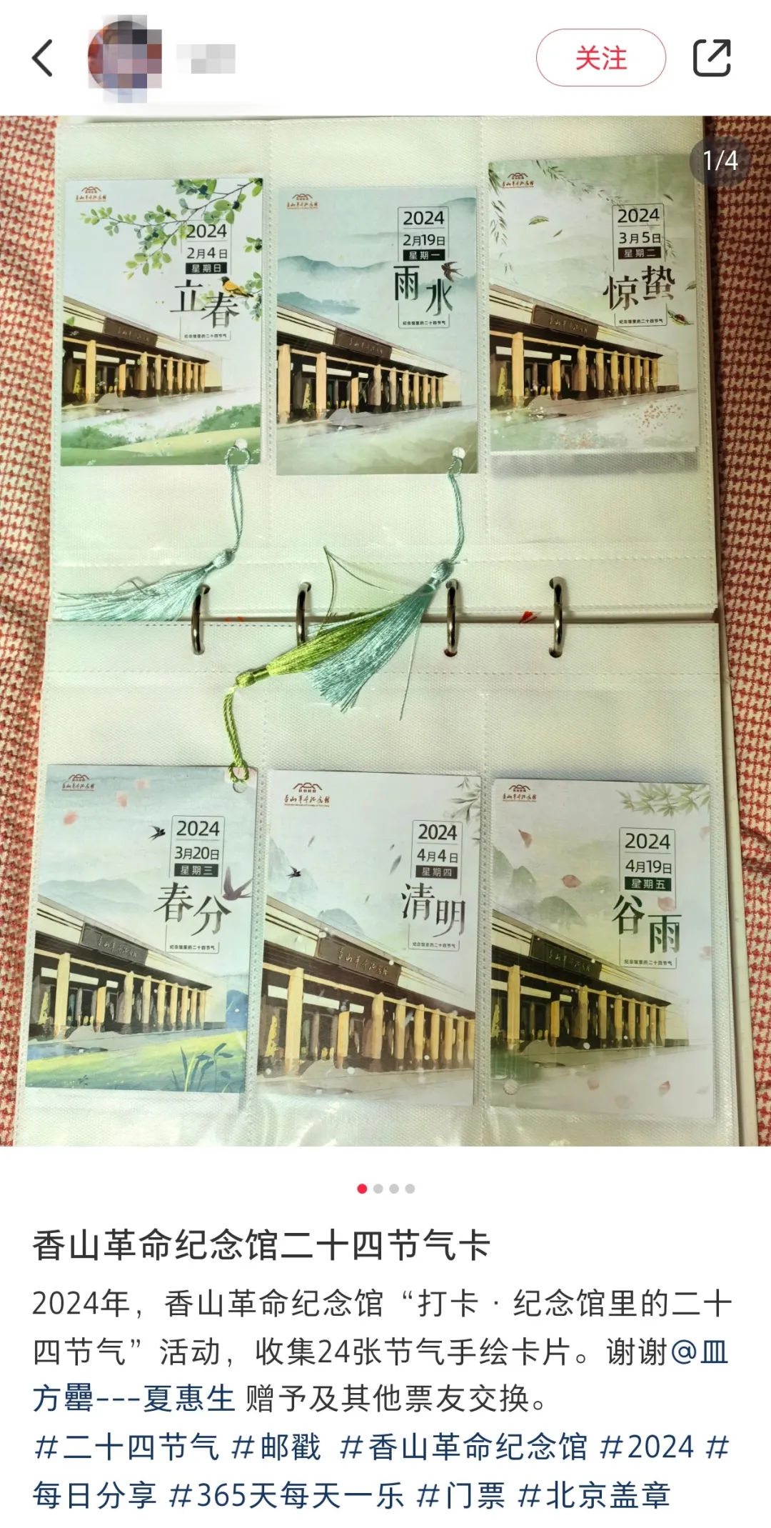 ▲网友在小红书上发布的香山革命纪念馆二十四节气卡片。
