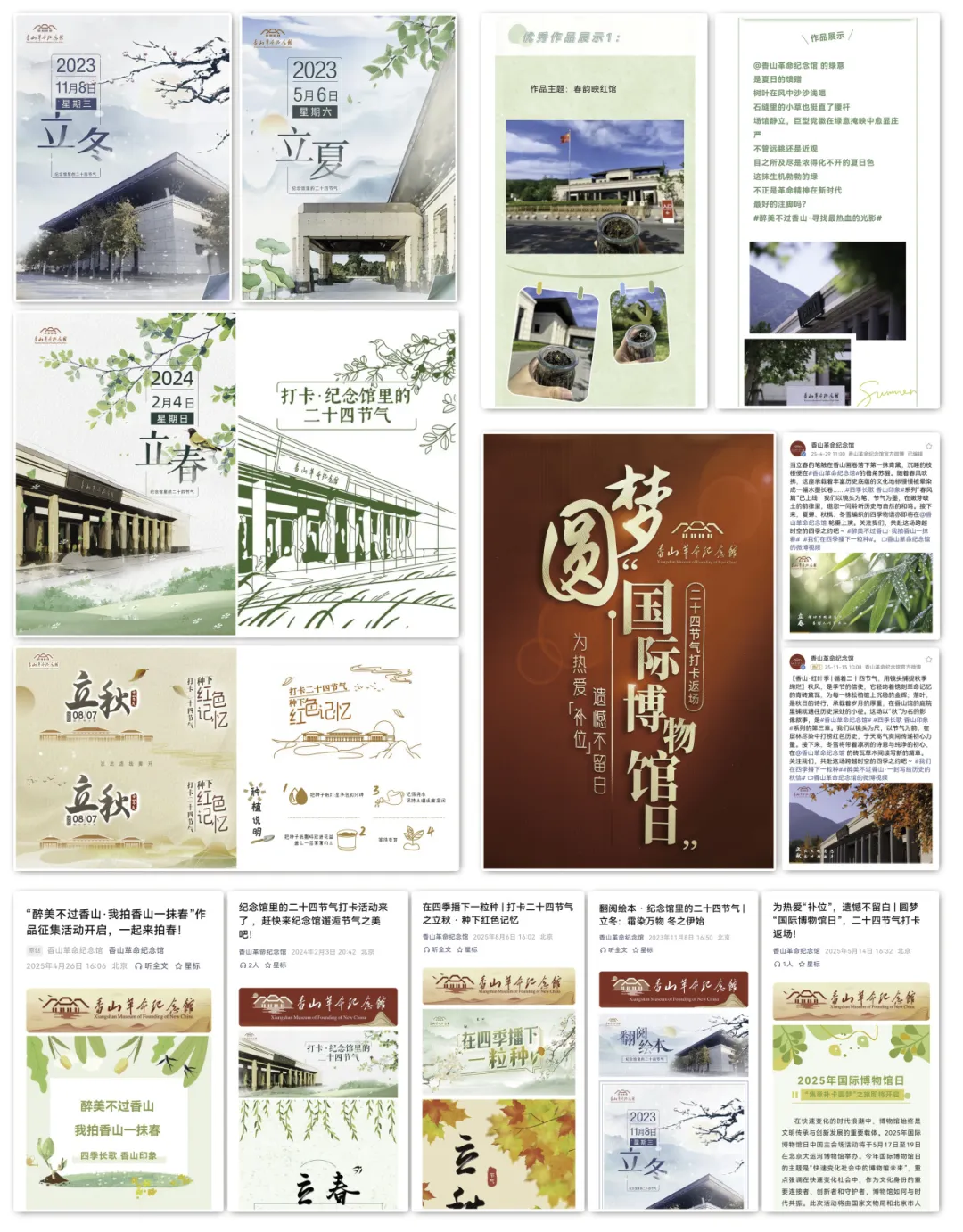 ▲香山革命纪念馆打造的《纪念馆里的二十四节气》数字媒体主题活动三年来发布的部分节气卡片、文章、海报等。