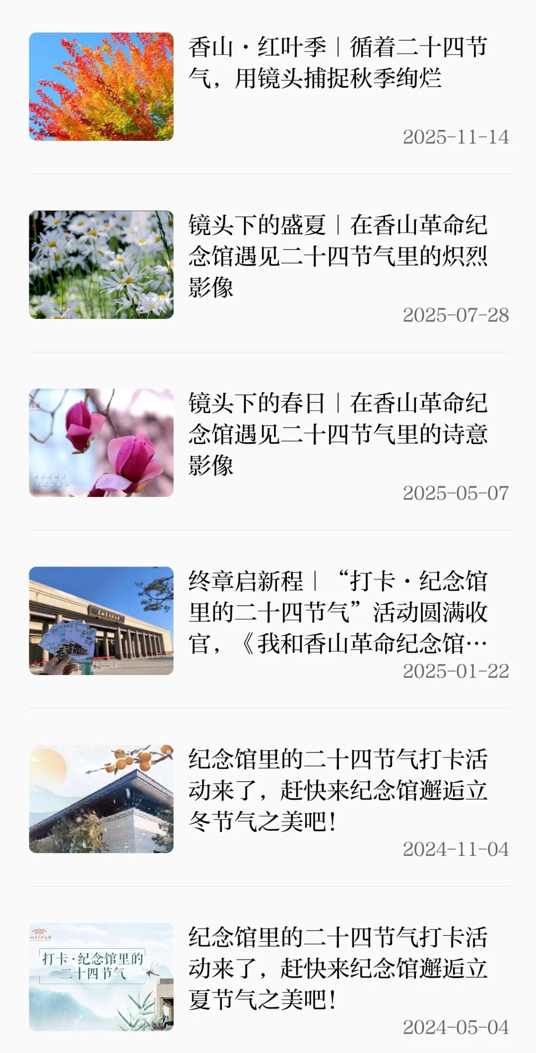 ▲2025年,香山革命纪念馆继续以二十四节气为契机,开展系列创新打卡活动——打卡二十四节气·种下红色记忆。