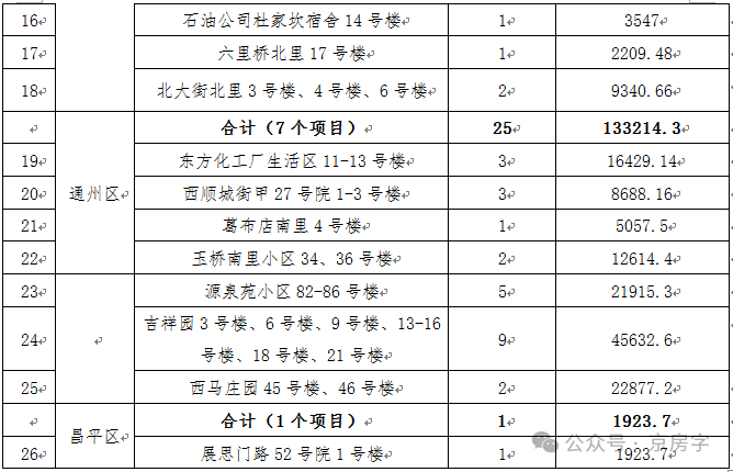 这些新确认的项目中,朝阳区和通州区最多,各有7个。丰台区也有6个,东城区和西城区各有3个和2个。下面是具体名单,来看看有没有您家小区。