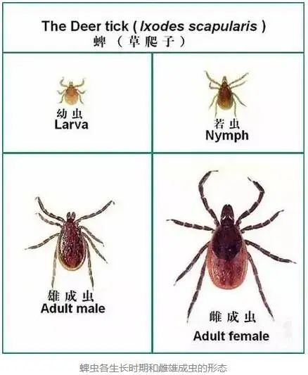 根据蜱成虫躯体背面是否有盾板,还分为硬蜱和软蜱,有壳质化盾板的为硬蜱,无盾板者为软蜱。通常危害性较大的是硬蜱,也是传播“蜱虫病”的罪魁祸首。