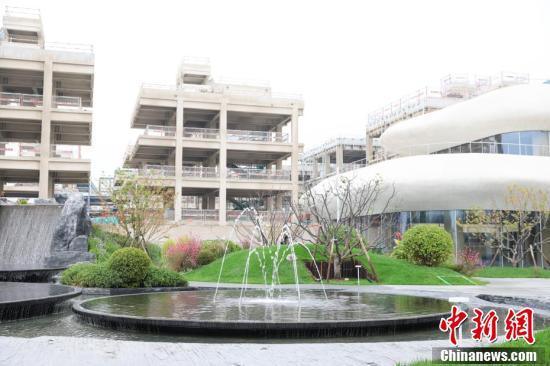10月17日,北京,记者走进建设中的“湾里”商业旅游综合体。该项目位于北京城市副中心文化旅游区北部产业带,是继城市副中心站综合交通枢纽之后,北京市在施的第二大TOD商业综合利用项目。“湾里”项目将引入王府井奥莱、汀云小镇、诺岚酒店三大业态,为副中心新添一座“空中花园”般的微度假小镇。该项目预计于2025年下半年开业,日均到访客流有望超过4万人次,将极大地提升副中心文旅势能。图为建设中的汀云小镇。