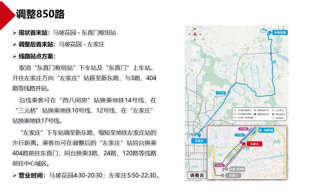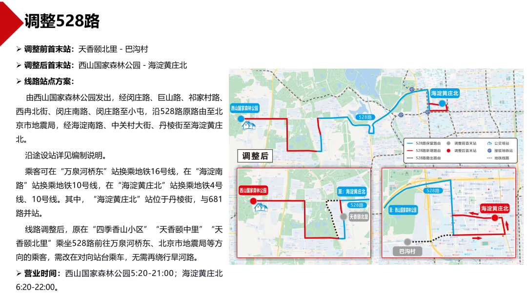 为优化全市公交线网布局,提高有关区域出行服务水平,提升公共交通运行效率,调整528路、144路等8条公交线路。增加巨山路、祁家村路地面公交线网覆盖,增加太平路前往莲花池西路方向的地面公交服务。缓解东直门外大街交通压力,部分线路由东直门地区调至左家庄。现对上述8条公交线路优化方案网上公开征求意见,欢迎社会各界提出意见建议。