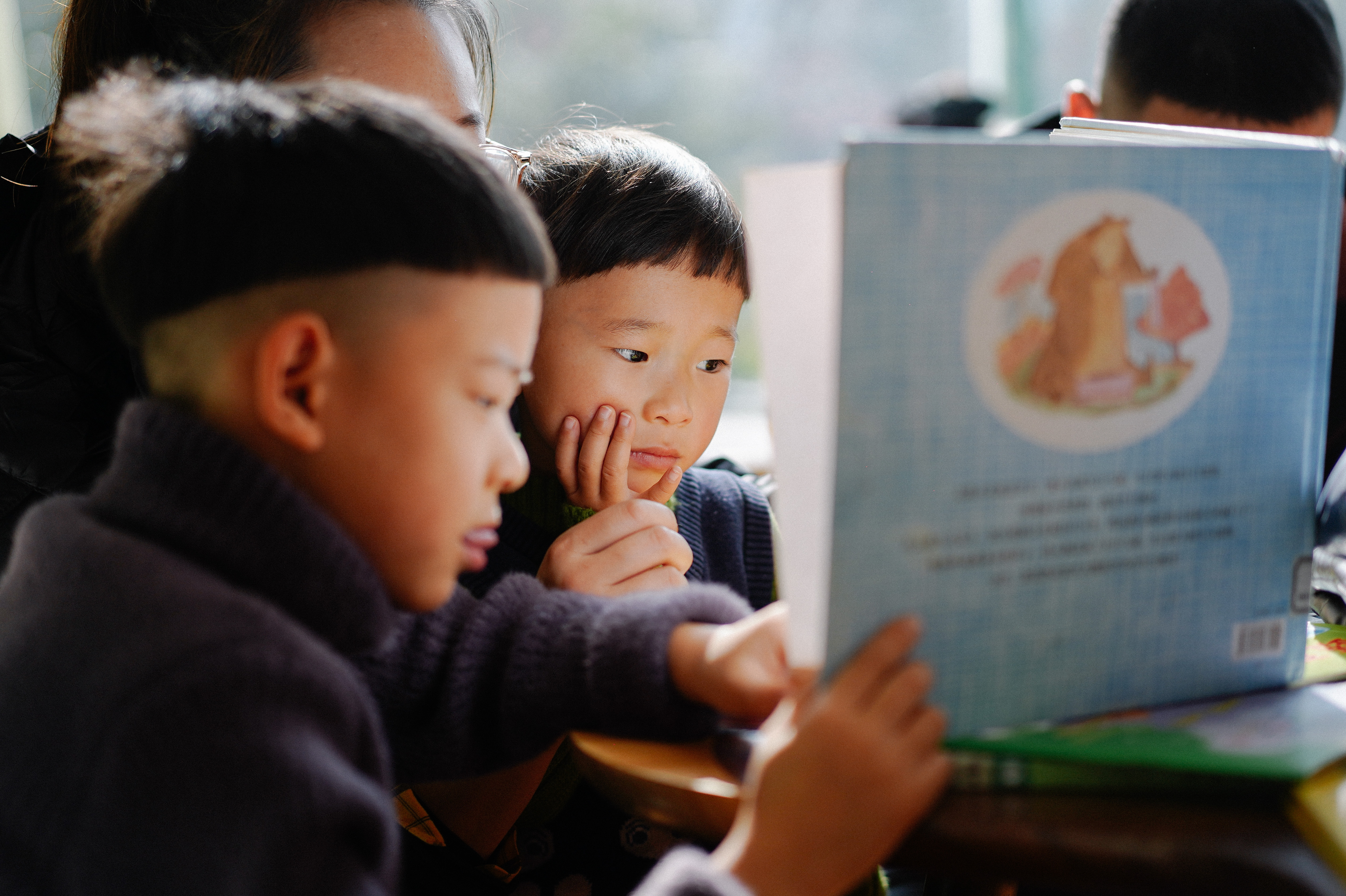 《悦读》 峡江县:几名小孩正在“倡导全民阅读 建设书香玉峡”图书巡展上看书。曾双全 摄