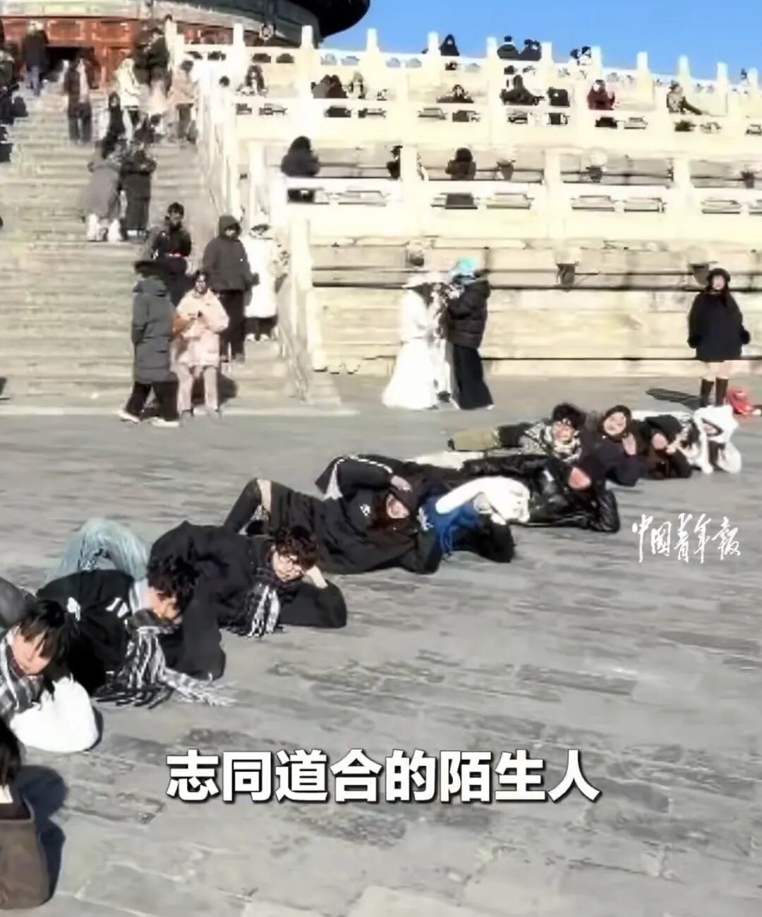 视频和热搜很快就会淡化,但那个下午,躺在天坛地上的年轻人们,或许会长久记得那份突然的默契和没来由的快乐。