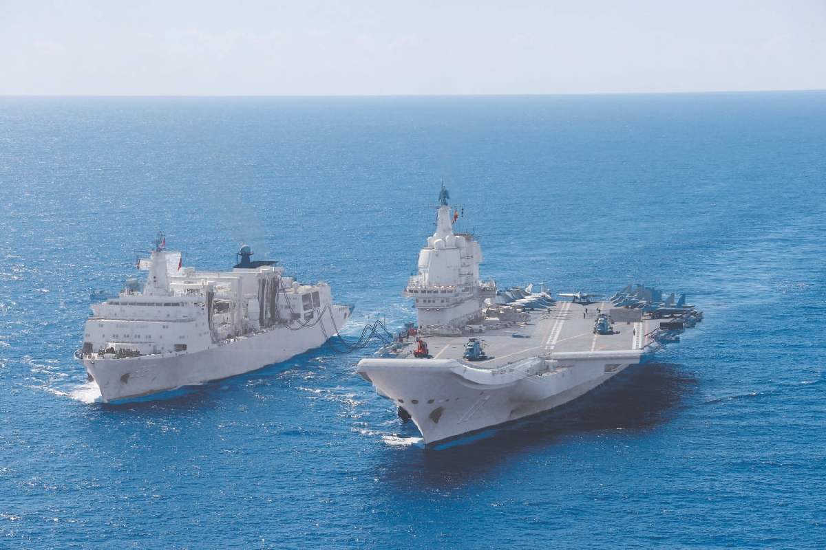 近日,海军辽宁舰、山东舰航母编队完成远海实战化训练,安全返回母港。这是编队开展海上补给。 新华社发