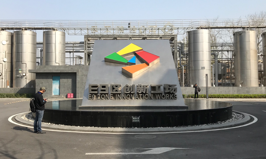 (北京时间记者 黄海东 潘琦 报道)E9区创新工场位于北京朝阳区双桥,占地面积118亩,建筑面积6.7万平方米,这里是中国首个由乳品厂转型的文化产业集聚区,是首农食品集团打造的一张文创新名片。