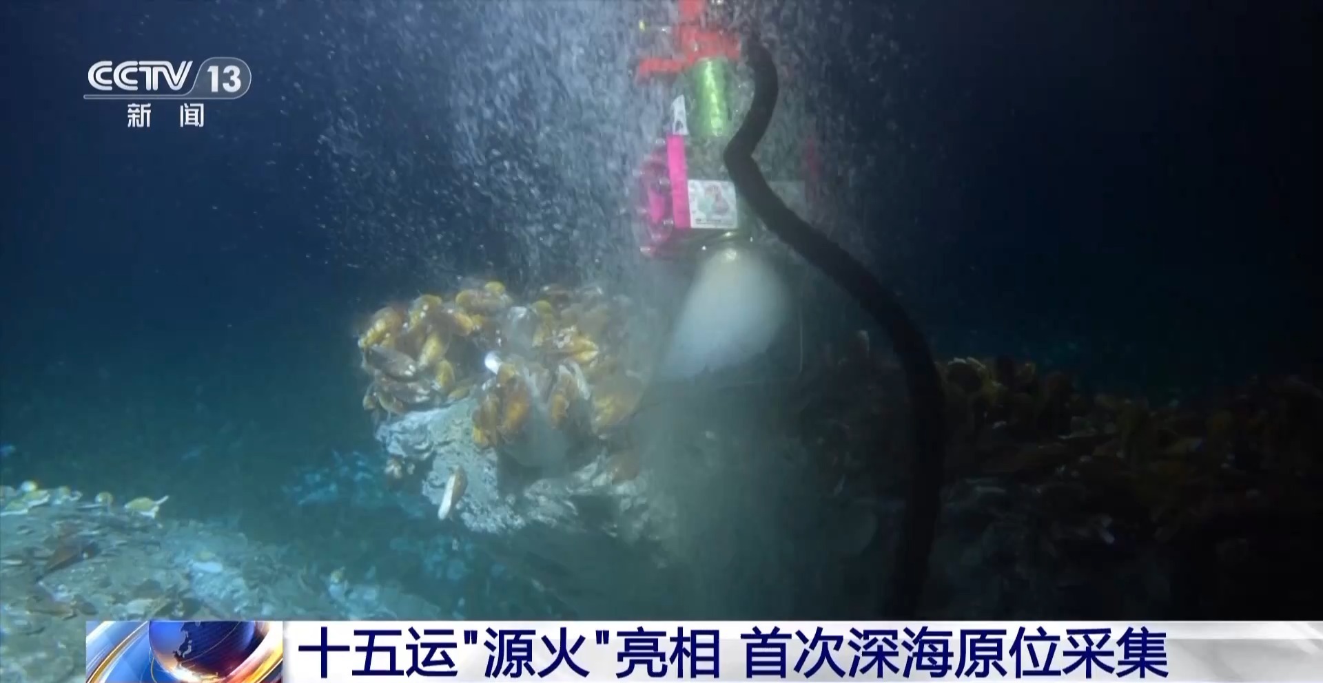 在“海马”号潜入深海后,科研人员远程操控机械臂,采集冷泉口溢出的可燃冰及伴生气体,当足量可燃冰在采集舱内降压分解,产生的甲烷气体即为“源火”气源。