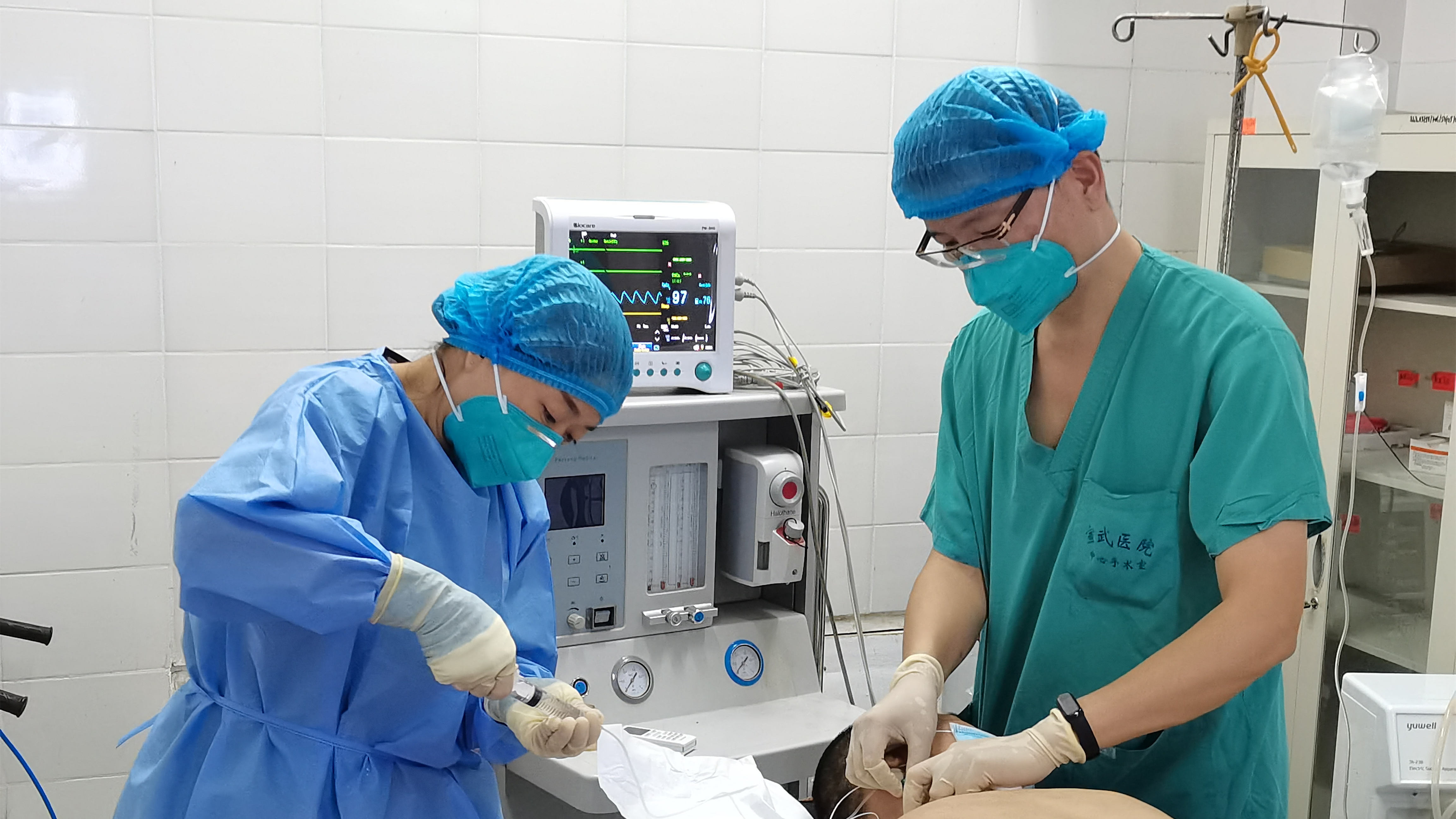 麻醉医生刘清海和手术室护士张小娜配合实施麻醉