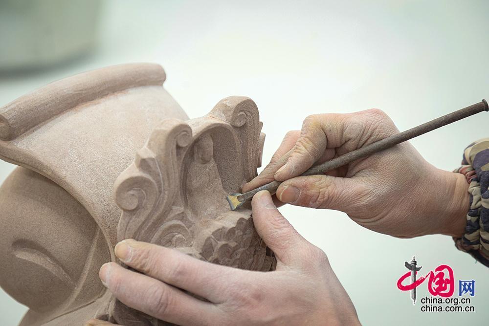 除了延续传统的石雕、石刻工艺,“大足雕客”劳务品牌还引入了玉雕、木雕、泥塑等新的作品材料和技术,让从业者有更多的就业机会和就业岗位。中国网记者 伦晓璇 摄