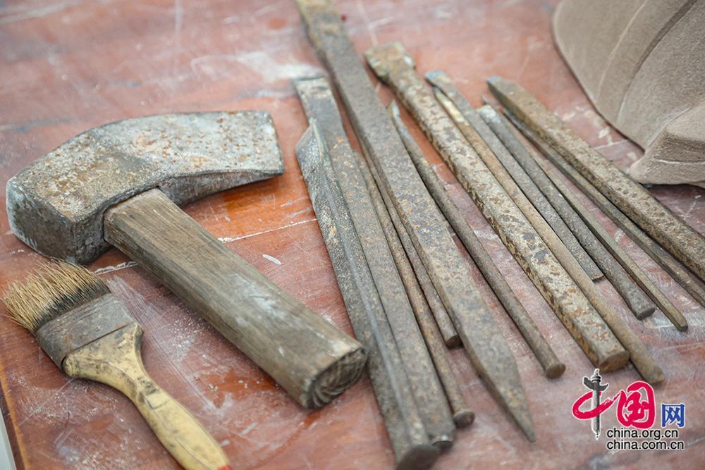 图为制作大足石刻所需要的部分工具。中国网记者 伦晓璇 摄