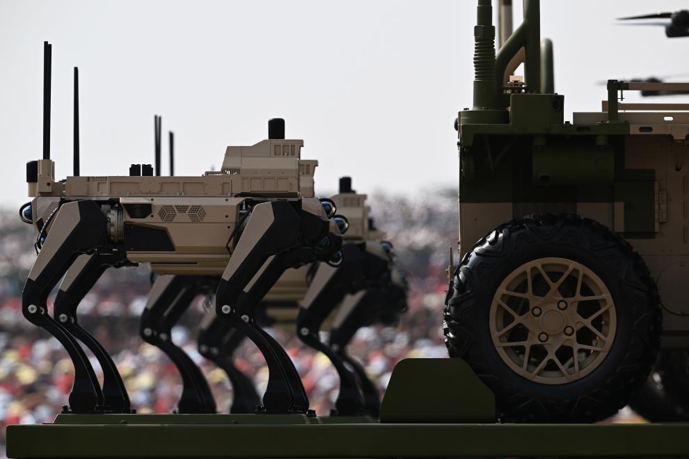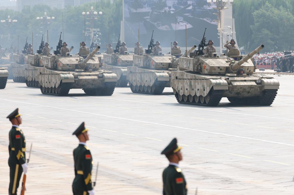 这是陆上无人作战方队接受检阅。新华社记者 李一博 摄