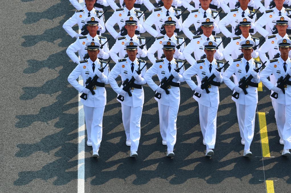 这是海军方队接受检阅。新华社记者 刘续 摄