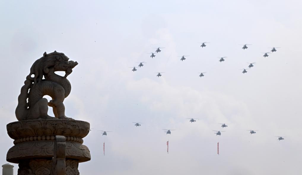 这是空中护旗梯队通过天安门广场。新华社记者 张玉薇 摄