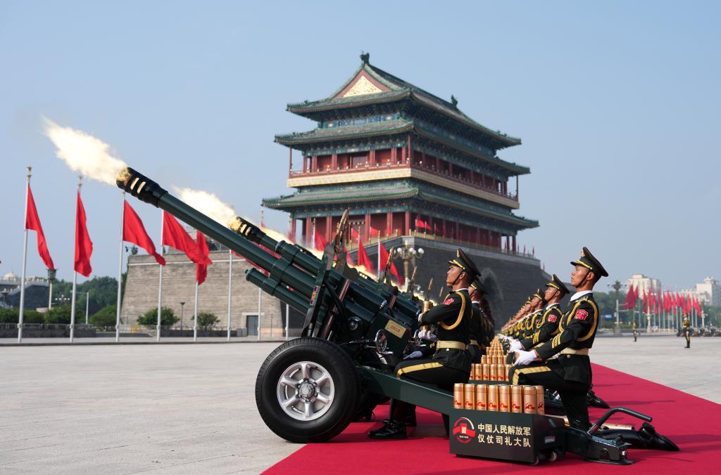 这是礼炮在天安门广场鸣响。新华社记者 牟宇 摄
