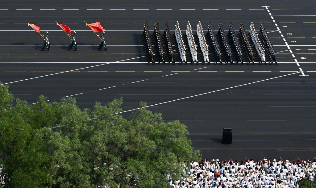 这是战旗方队接受检阅。新华社记者 张铖 摄