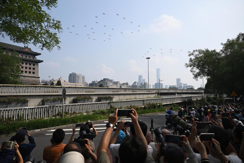 这是市民在拍摄空中梯队。新华社记者 陈浩明 摄