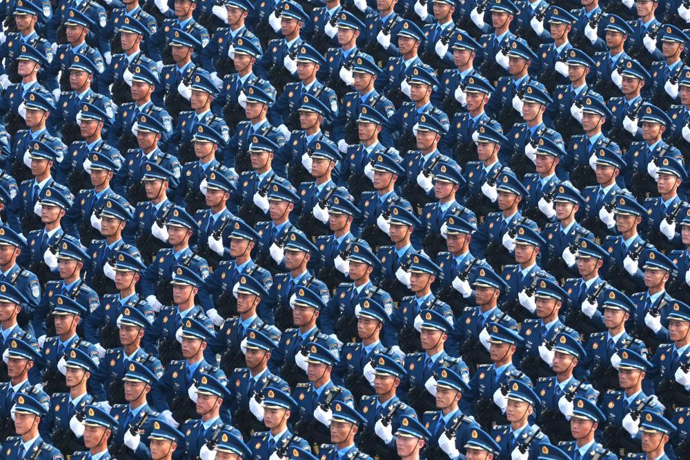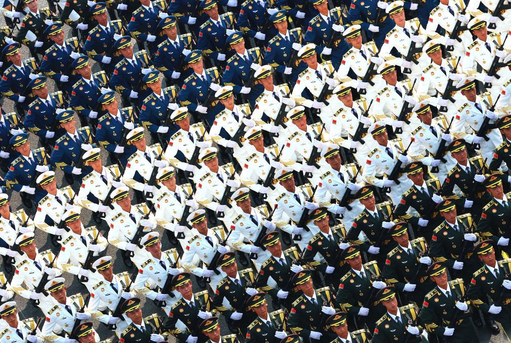 这是中国人民解放军仪仗方队接受检阅。新华社记者 刘续 摄