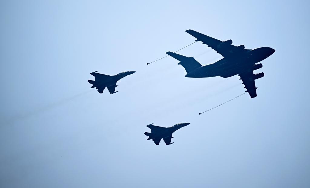 这是加受油机梯队接受检阅。新华社记者 夏一方 摄