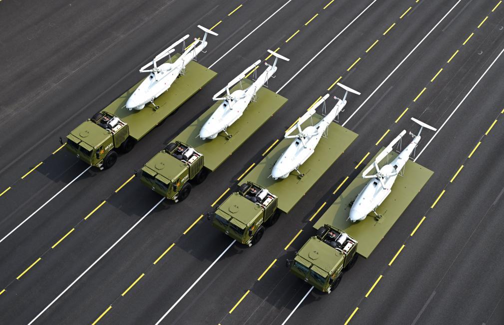 这是空中无人作战方队接受检阅。新华社记者 任鹏飞 摄