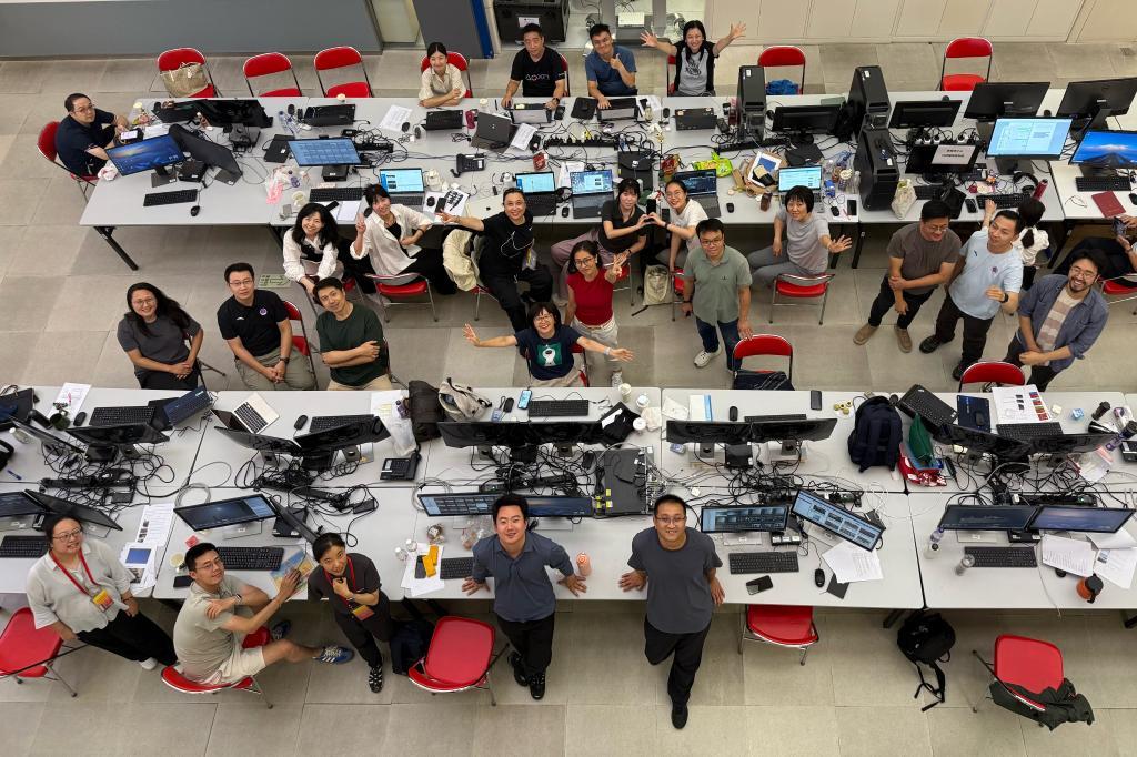 部分挑片编辑、新媒体编辑与技术人员合影。新华社记者 卢烨 摄