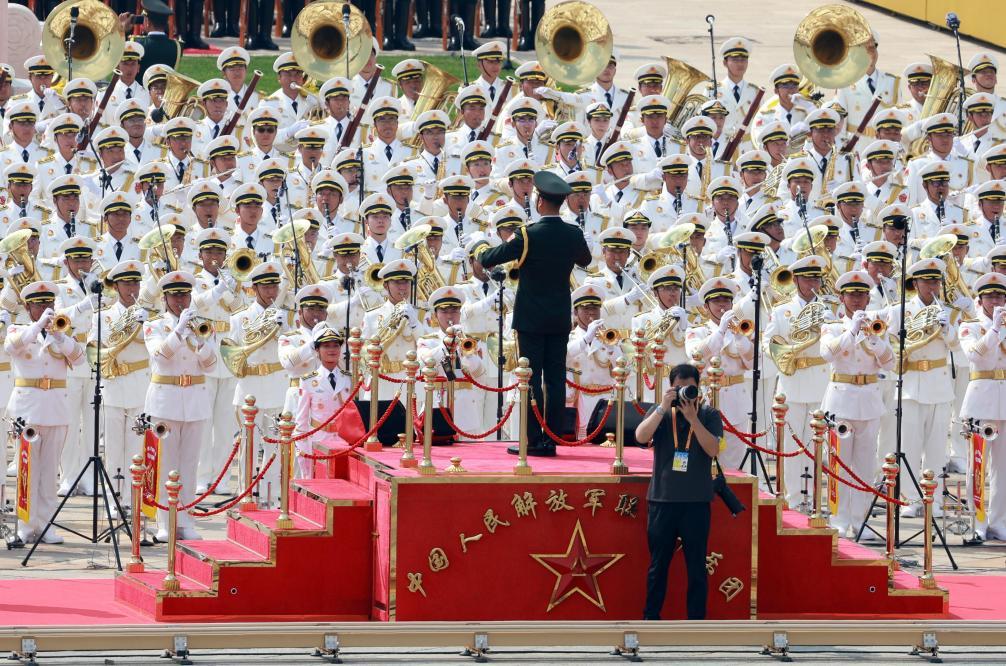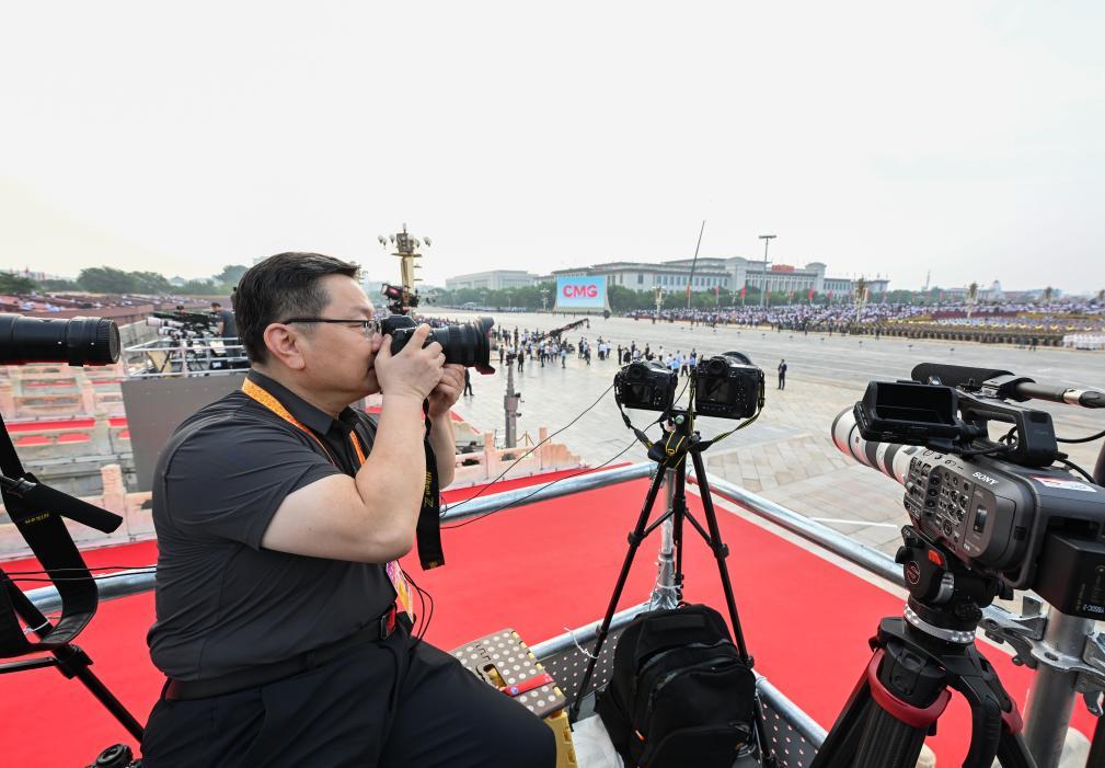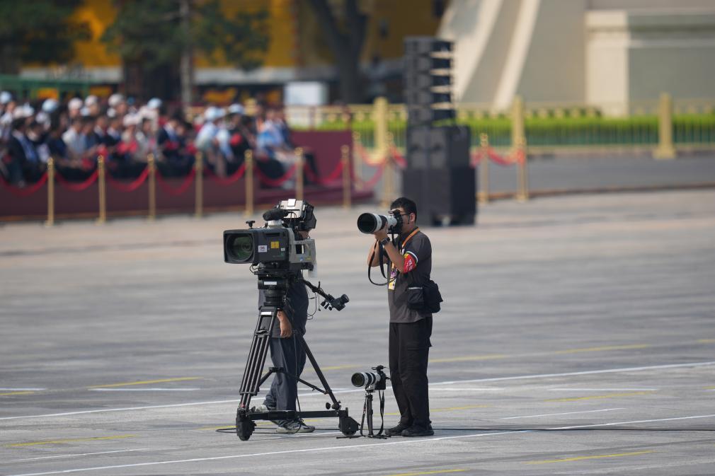 新华社记者王晔在军乐团点位拍摄。
