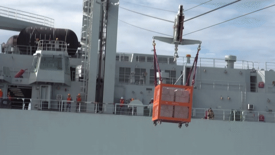 官兵们克服海上6级的瞬时风力,超过4米的海面涌浪,快速完成补给任务