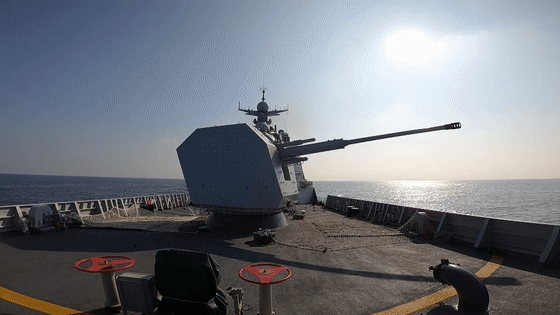 海军烟台舰、青岛舰组成舰艇编队迅速装订射击参数,主炮对“敌舰”打击,击毁水面目标。
