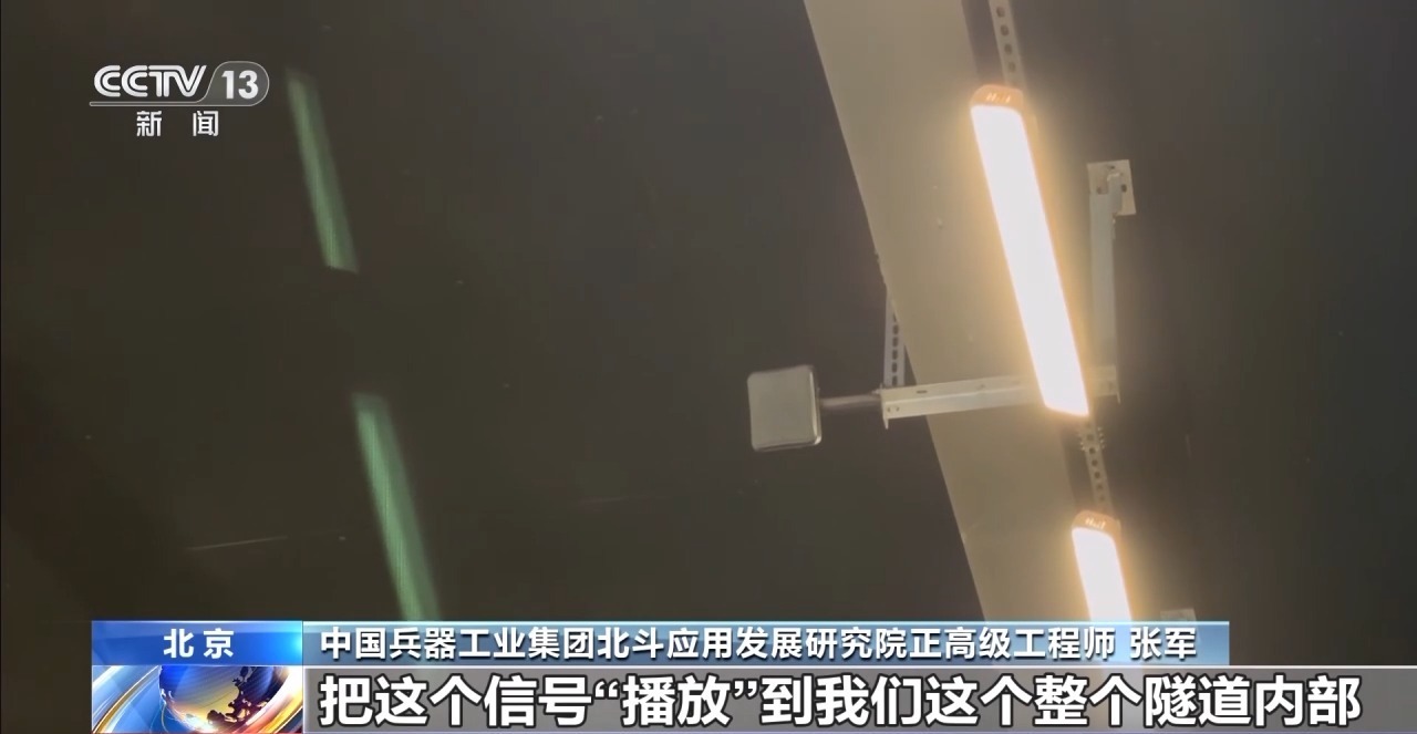 中国兵器工业集团北斗应用发展研究院正高级工程师 张军:我们隧道顶上的天线呢,把这个信号“播放”到我们整个隧道内部,使我们整个隧道内部充满了北斗信号。