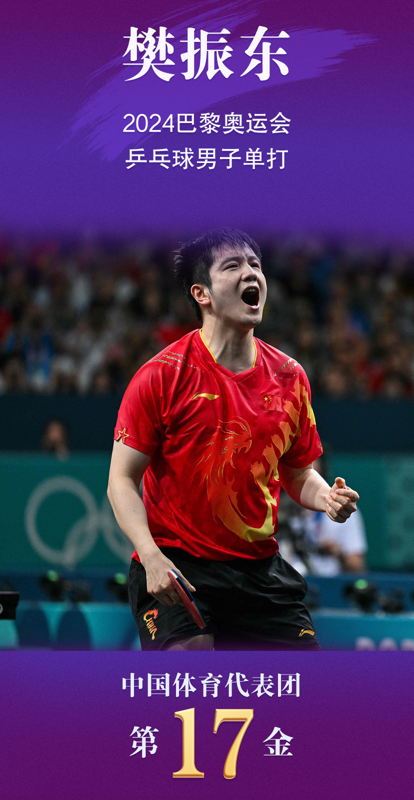 2013年,樊振东在巴黎参加了自己职业生涯的第一届世乒赛。2018年,樊振东在巴黎捧起了自己的第二座世界杯男单冠军奖杯。2024年,樊振东在福地巴黎不仅完成了大满贯,更是成为了继马龙之后,第二位达成集奥运会、世锦赛、世界杯、亚运会、亚锦赛、亚洲杯、巡回赛总决赛、全运会单打冠军于一身的“超级全满贯”乒乓球男运动员。