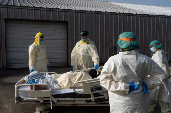 美国得克萨斯州的医护人员在照料新冠肺炎患者