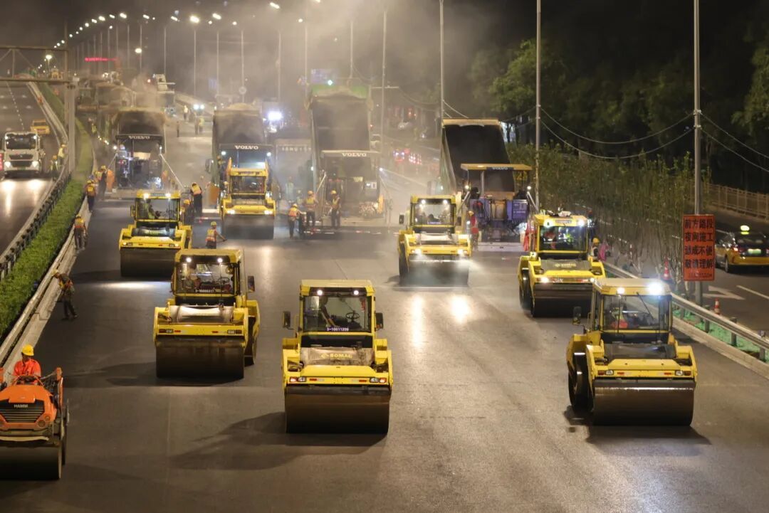 首发集团公联洁达养护公司安全总监刘海军说,参建各方利用有限时间开展大规模协同作业,创造了新的“北京速度”。从2025年7月20号到8月15号,总共27天时间,每天夜间凌晨开始作业,早上5点收工,折算到小时大概只有130小时的有效作业时间,需要用足时间、占满空间,关键工序提前进行演练,所有的机械设备按图落点就位。以1#标为例,最多的一天晚上,开展了5个铣刨摊铺作业面,大型设备100余台套,摊铺的长度大概是2公里,面积4.8万平米,当天的沥青混合料用了5300吨,非常不容易。