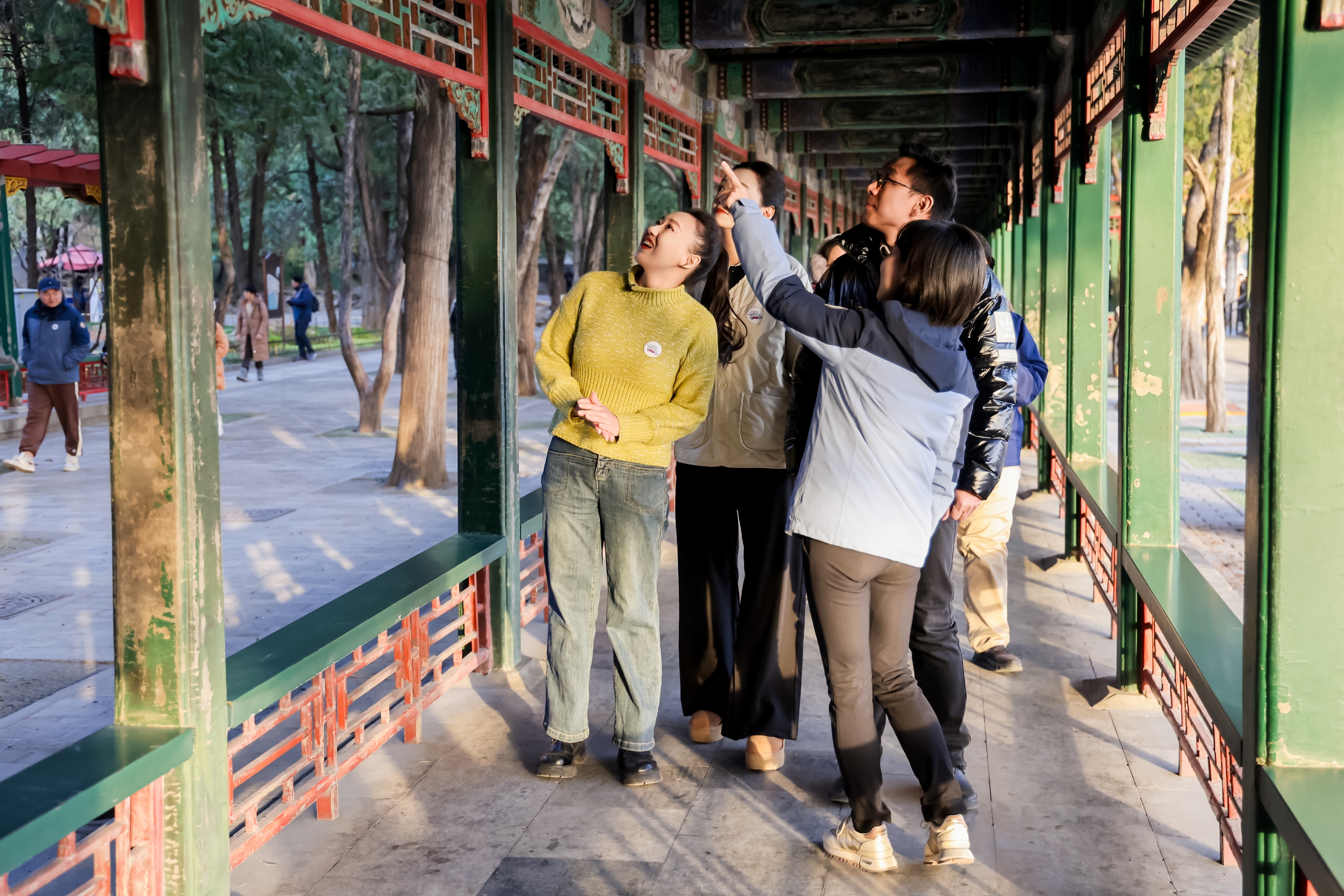 新京报讯(记者张璐)11月28日,一场名为“文化焕新:守护时光的痕迹”的青年体验活动在北京颐和园展开。颐和园古建工程科工程师常耘硕,颐和园遗产保护中心副队长、高级工程师闫晓雨与北京联合大学学生代表一同走进文物保护现场,通过沉浸式体验与深度对话,揭秘文物保护修复领域的就业潜力、技能要求与发展前景。