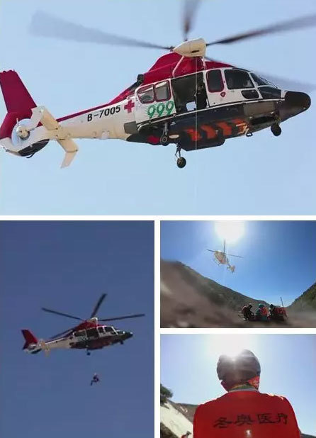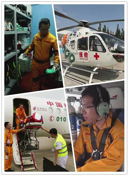 虽然身为医生,但是魏彦芳和他的团队却不是穿着人们通常印象中的白大褂、而是一种醒目的黄色工作服。这是因为他的工作地点不仅仅是在地面,有一大部分时间是在空中。
