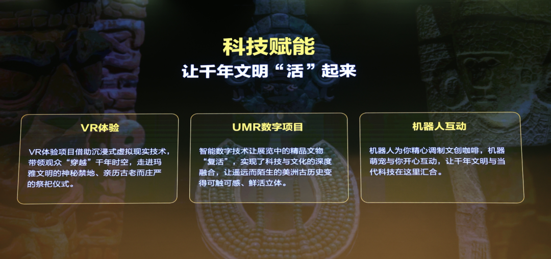 科技让文物“活”起来:VR体验带你穿越玛雅祭祀现场;《优美灵境》数字导览让精品文物动情讲述自己的故事;还有机器人为你现场调制文创咖啡。