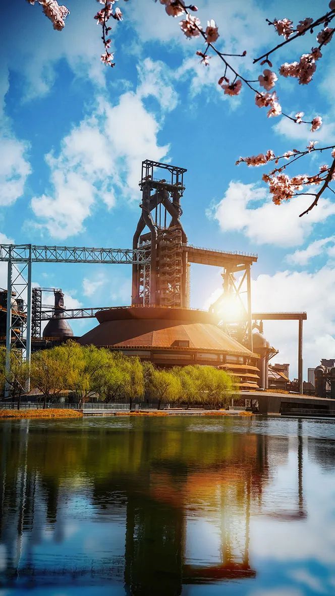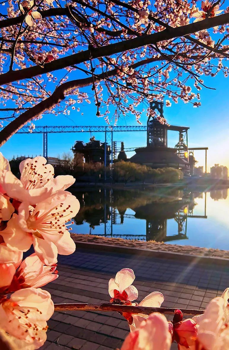 亮点秀池畔的桃树与三高炉相映成趣,倒影在湖面勾勒出独特的美学。快来秀池合影,记录下这份春日的浪漫邂逅。
