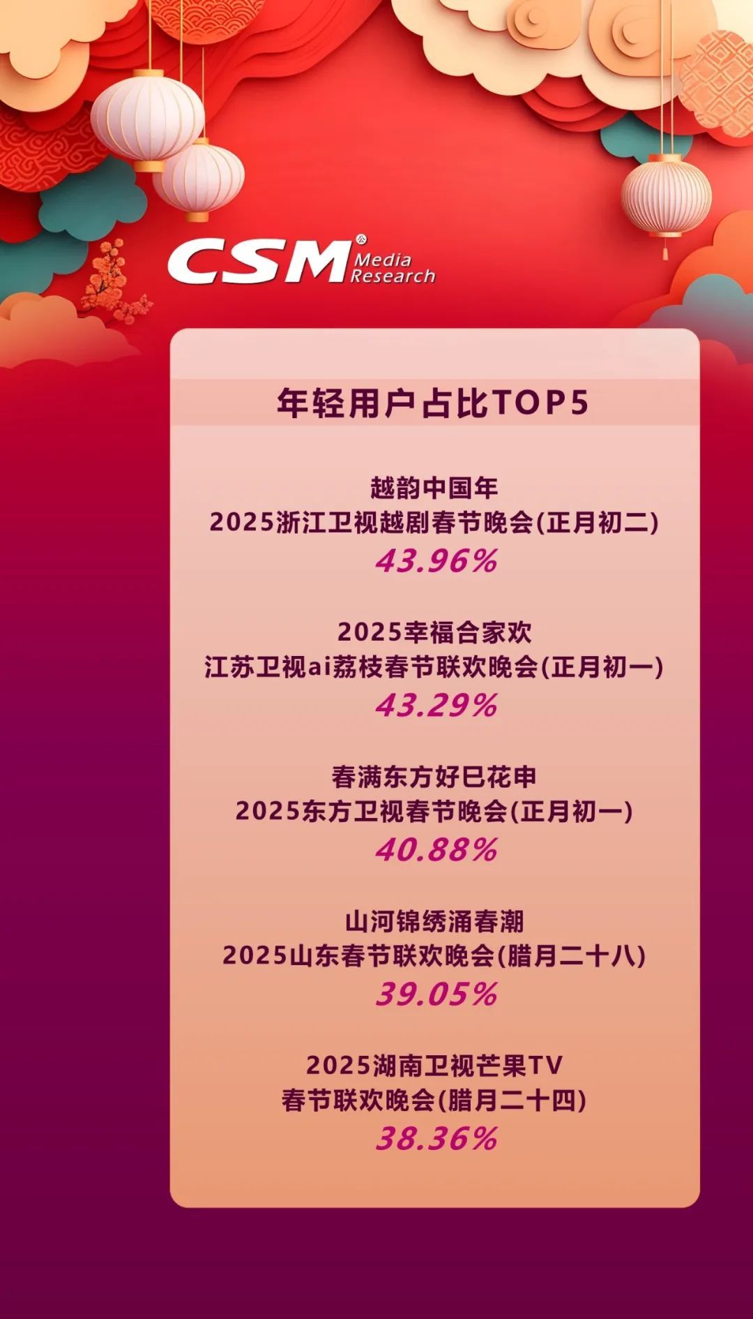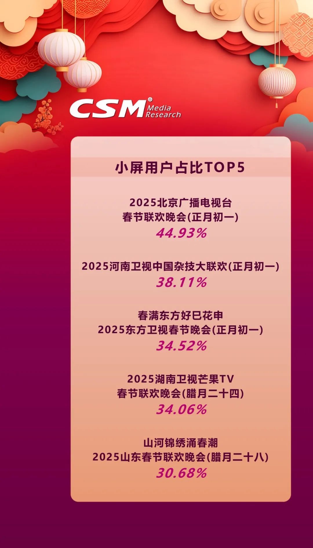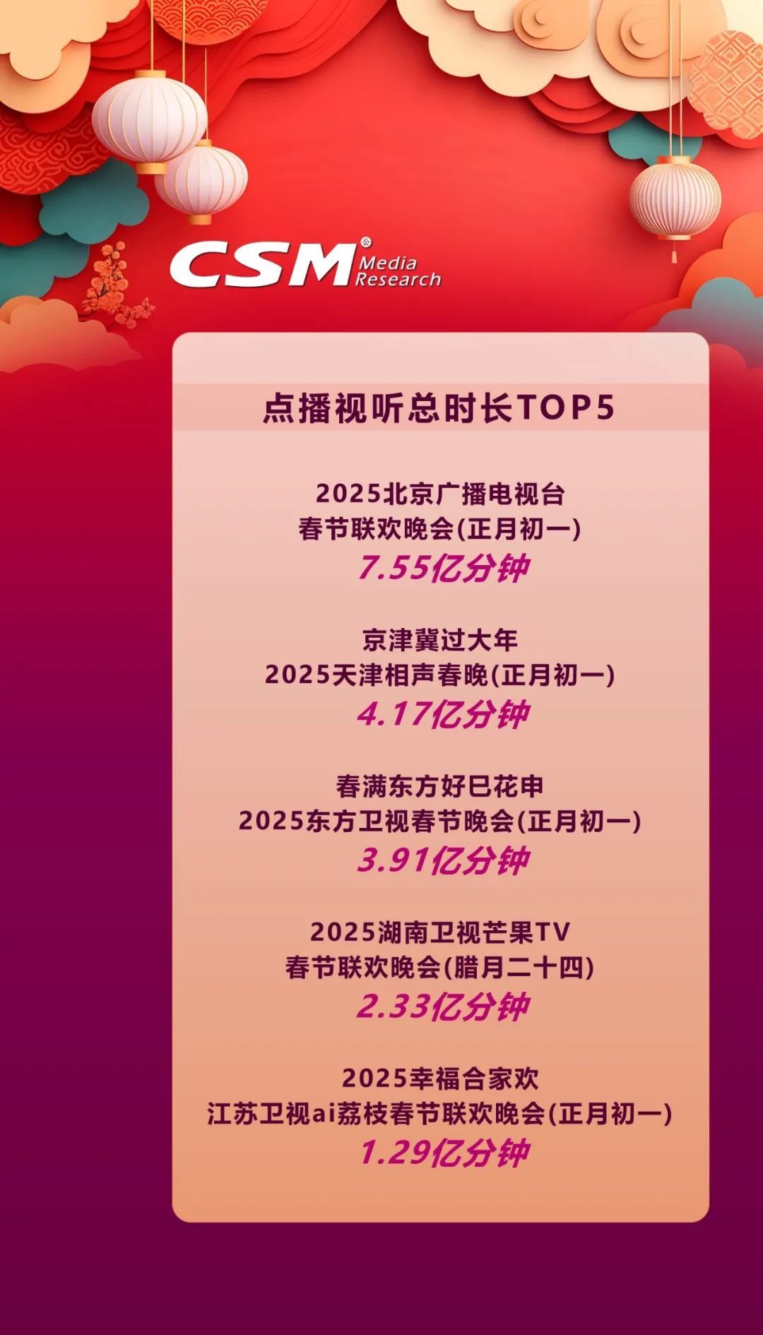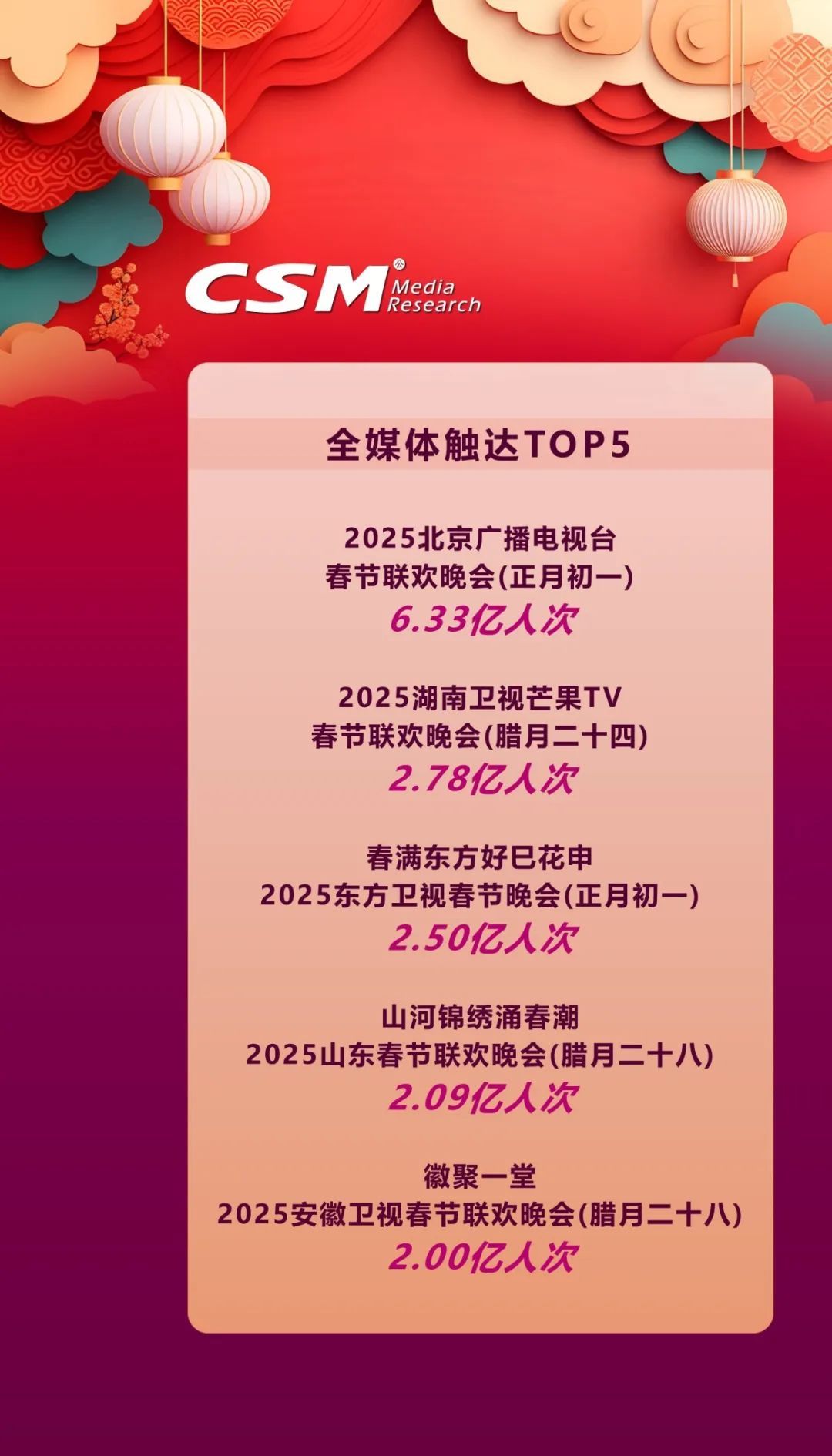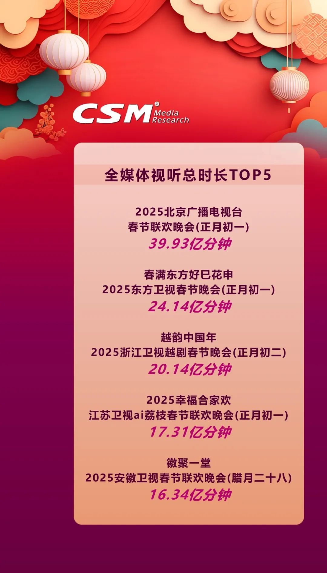 2025 年省级卫视春晚背后究竟还隐藏着多少数据秘密?本文基于CSM在2025年春节期间的全媒体视听同源数据(CSM NewTAM)与 CSM V+Scope 融合媒体数据云平台数据,以专业视角深度剖析,带您全方位洞察春晚的传播影响力 。