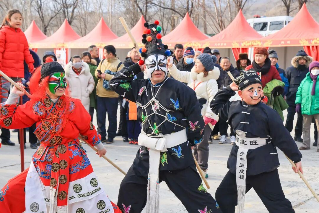 游园会以非遗展演为核心,让传统技艺在新春烟火气中“活起来”!国家级非遗黄骅麒麟舞霸气巡场,瑞兽腾跃间送上年味满满的新春祝福;陕北安塞腰鼓铿锵开场,鼓点声声点燃山谷里的热闹年味。