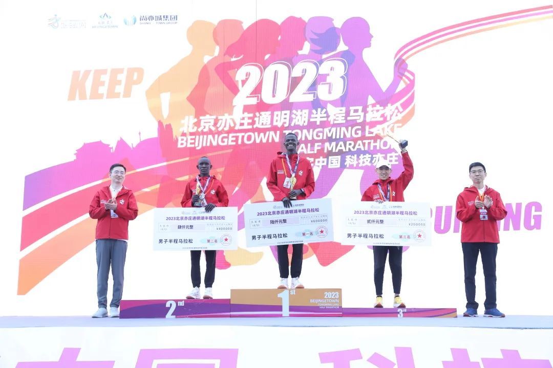 经过激烈的角逐,来自肯尼亚的SAMUEL KALALEI和NAOMIKAKOKOLIMAMUREI分别凭借1小时5分51秒和1小时15分54秒的成绩获得2023北京亦庄通明湖半程马拉松男子组和女子组冠军。