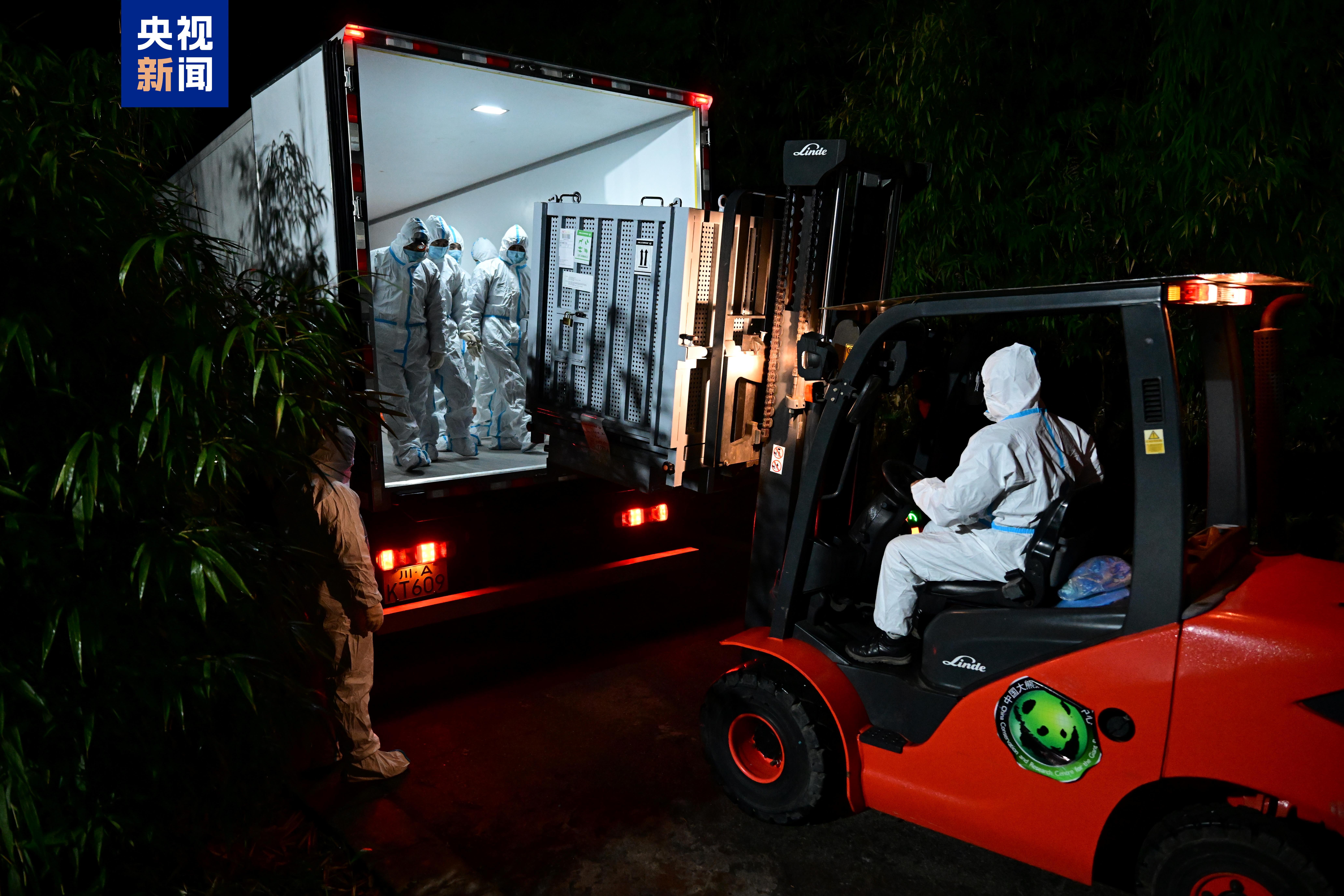 ▽旅日大熊猫“晓晓”“蕾蕾”抵达熊猫中心雅安基地