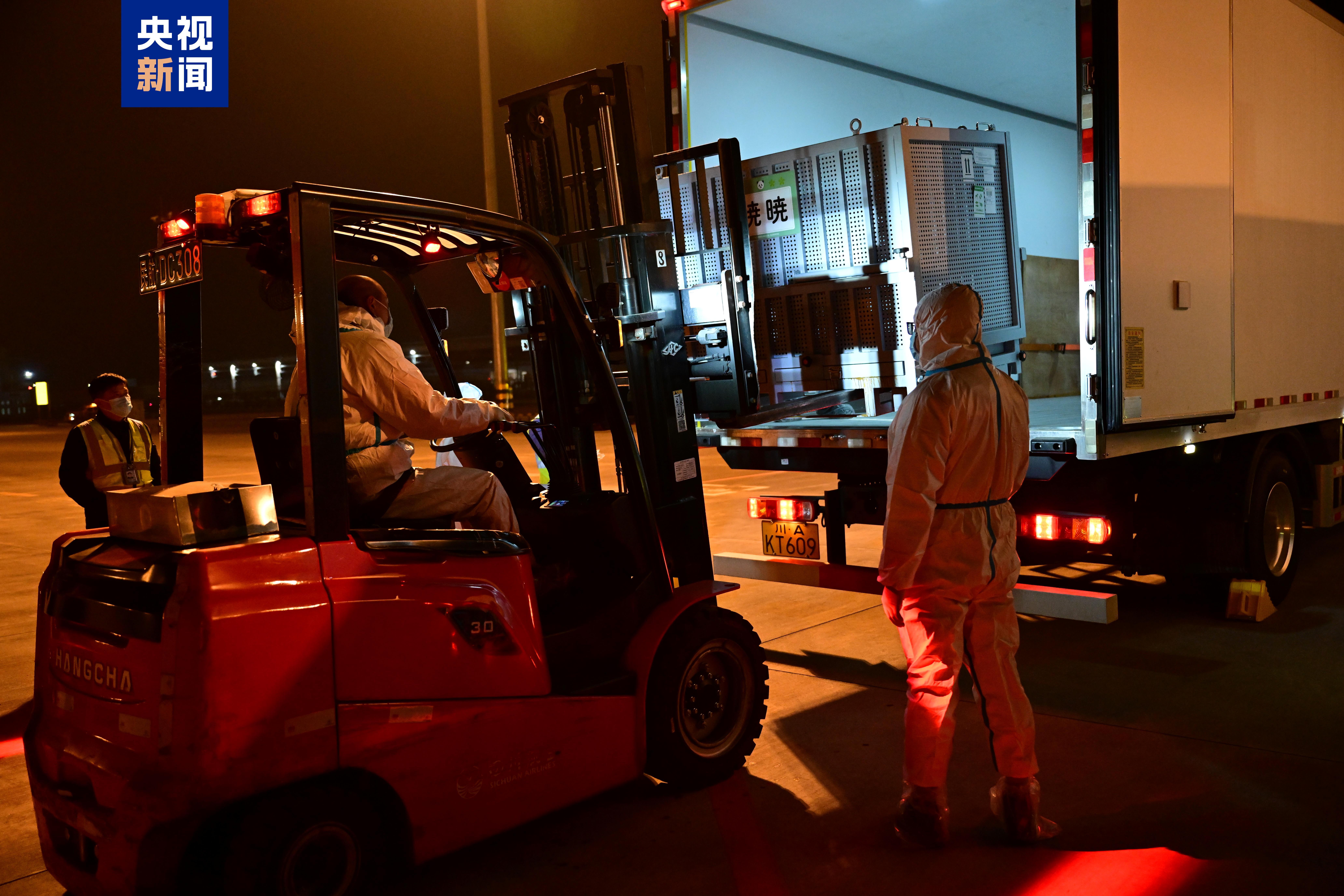▽旅日大熊猫“晓晓”“蕾蕾”装运上车