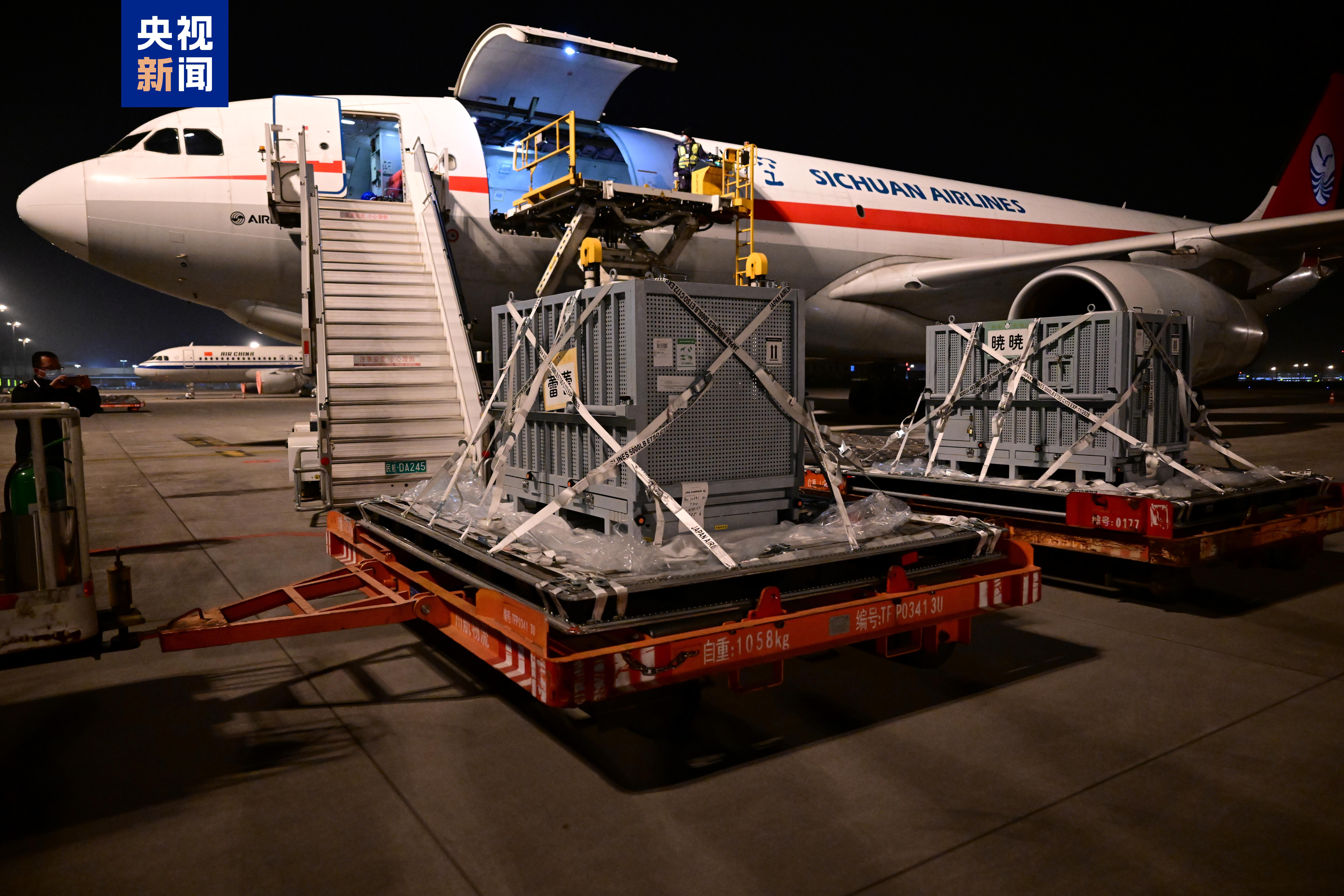 ▽旅日大熊猫“晓晓”“蕾蕾”抵达成都