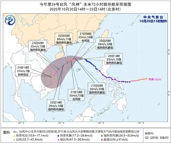 今年第24号台风“风神”进入南海后,强度有所加强,并将走出抛物线路径。未来三天(10月20日至22日)它还将联手冷空气,给我国南海部分海域以及华南沿海带来强风雨天气。