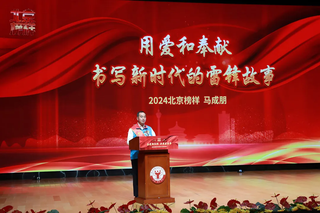 2024年北京榜样月榜人物、京徽志愿服务总队负责人、北京安北网络文化传媒有限公司运维部负责人马成朋以《用爱和奉献,书写新时代的雷锋故事》为题,讲述了他从受助者到助人者的暖心历程。18年来,从北京站疏导到冬奥服务,他累计志愿服务超14000小时。
