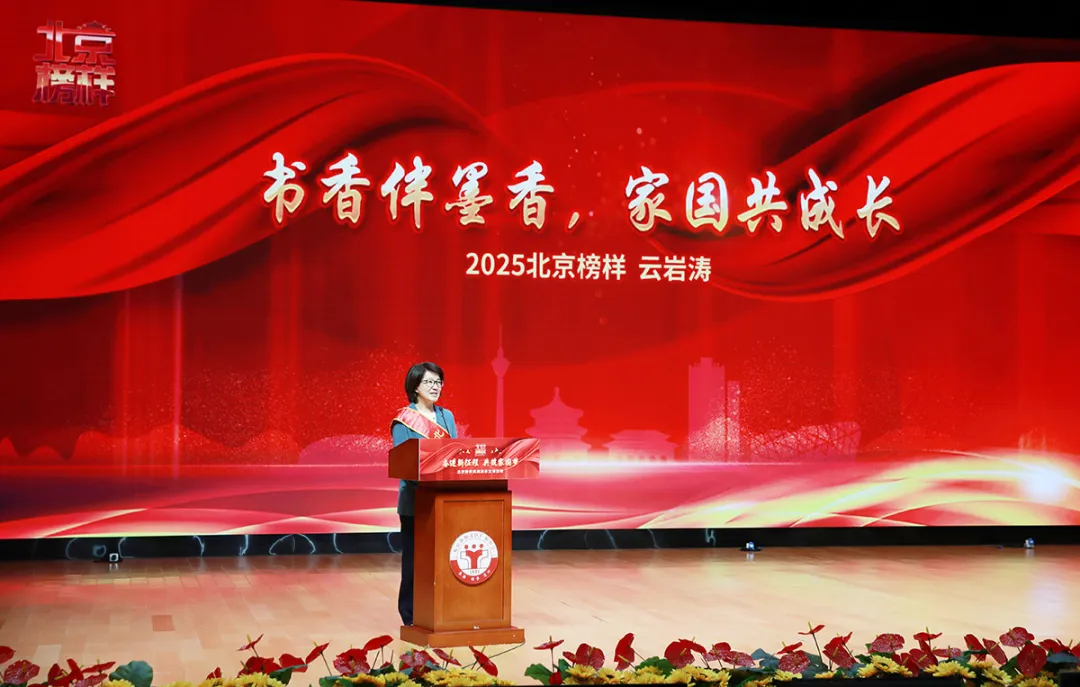 2025年北京榜样周榜人物、九州出版社编辑部主任云岩涛以《书香伴墨香,家国共成长》为题,与同学们分享了她21年推广阅读、构建“坐标阅读法”引导孩子成长的故事。她倡导“从现在开始,爱上阅读”,让现场学子深刻感受到书香浸润的恒久力量。