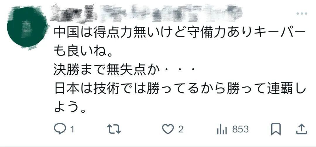 “虽然我没看比赛,但感觉中国队很难对付。他们能保持零失球,现在肯定信心更足了。战胜这样的对手,对日本队的成长很有帮助。”