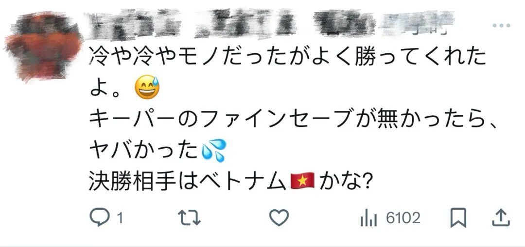 总体而言,在中国队和越南队的半决赛开始前,更多日本球迷看好越南队晋级决赛。